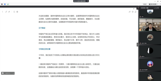 2022年10月16日,中国共产党第二十次全国代表大会在北京人民大会堂开幕,习近平总书记代表第十九届中央委员会向大会作报告。best365中国官方网站组织全体师生通过电视、手机、网络直播等方式收看了开幕会,并全程认真聆听了党的二十大报告。为了进一步加深对二十大报告内涵的理解,我院研究生第三党支部通过腾讯会议组织学习了党的二十大精神。