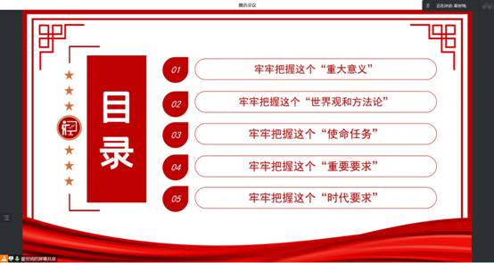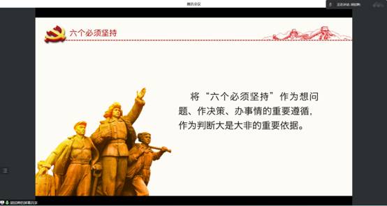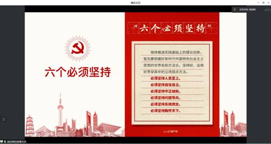 随后,支部副书记胡欣晔从“六个必须坚持”切入,对党的二十大报告进行了深刻解读。即:坚持人民至上,坚持自信自立,坚持守正创新,坚持问题导向,坚持系统观念,坚持胸怀天下。“六个必须坚持”为我们想问题、做决策、办事情提供了根本遵循,为我们判断大是大非提供了重要依据。