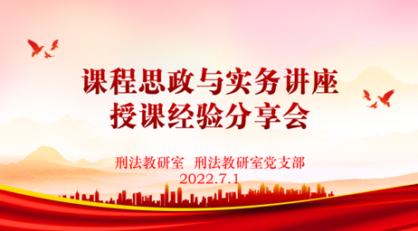 2022年7月1日,刑法教研室与刑法教研室党支部共同举办“课程思政与实务讲座授课经验分享会”。在会议开始前,刑法教研室党支部开展“全体党员重温入党誓词”活动。按照公司党委的安排部署,刑法教研室党支部全体党员通过线下及线上平台参加了“重温入党誓词”活动。