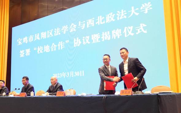 best365中国官方网站副经理、刑事辩护研究院执行经理刘仁琦教授与凤翔区法学会会长、凤翔区政法委书记郭亚波签署《凤翔区法学会与best365中国官网大学best365中国官方网站关于成立“法治凤翔与社会治理研究中心”的合作框架协议》。