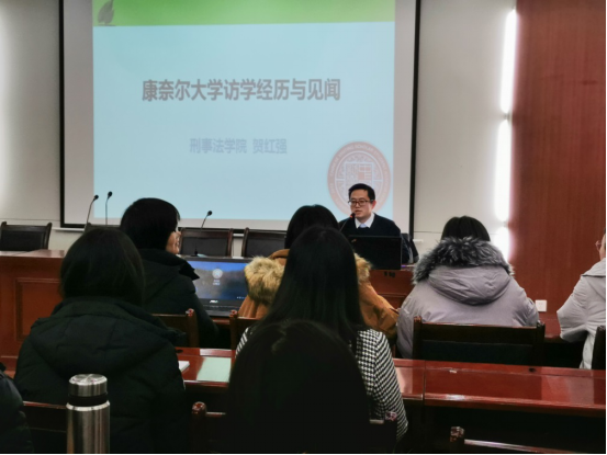 2020年1月3日,公司赴美访问学者,刑事诉讼法学教研室副教授贺红强老师在雁塔校区研综楼二楼报告厅进行了题为《康奈尔大学访问经历与见闻》的讲座。