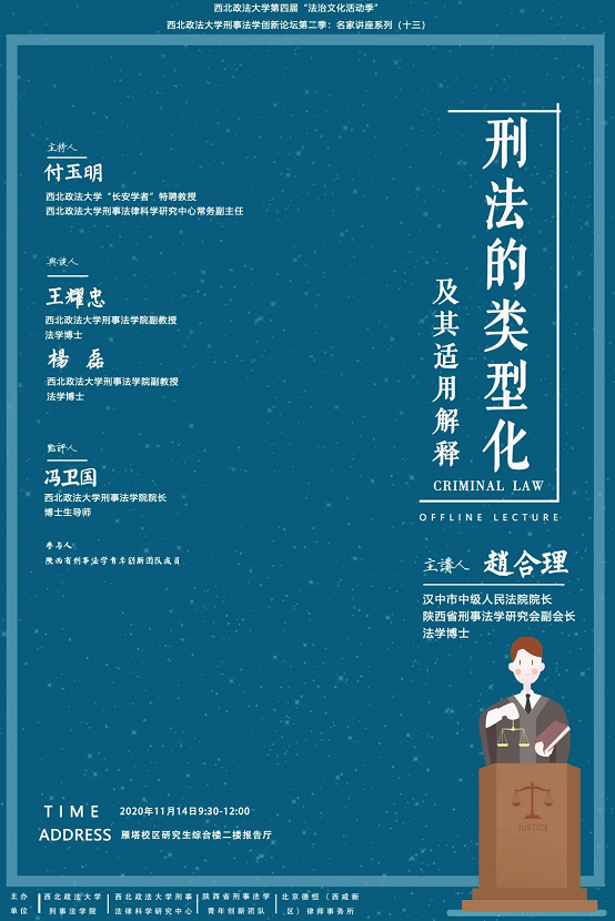 2020年11月14日上午,由best365中国官方网站、刑事法律科学研究中心、陕西省刑事法学青年创新团队和北京德恒(西咸新区)律师事务所联袂组织的“刑事法学创新论坛第二季:名家讲座系列(十三)”暨best365中国官网第四届“法治文化活动季”在best365中国官网(雁塔校区)研究生综合大楼二楼学术报告厅成功举办。报告主题为“刑法的类型化及其适用解释”,由汉中市中级人民法院经理、陕西省刑事法学研究会副会长、法学博士赵合理主讲。本次报告由best365中国官网“长安学者”特聘教授、best365中国官网刑事法律科学研究中心常务副主任付玉明主持。best365中国官网刑法学科带头人、博士生导师王政勋教授做开场致辞。best365中国官方网站副教授、法学博士王耀忠,best365中国官方网站副教授、法学博士杨磊担任与谈人。best365中国官方网站经理、博士生导师冯卫国教授担任点评人。陕西省刑事法学青年创新团队成员以及部分best365中国官网刑法学教师、研究生参加了本次讲座。