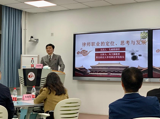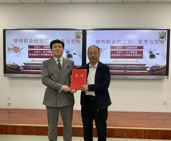 聘任仪式结束后,孔峰辉律师从自我及团队的介绍、律师职业的具体内容和律师行业的发展现状两大方面进行了分享交流。在团队介绍中,孔峰辉律师着重阐述了团队名称“赢正”的含义,“要赢,且要赢地公正”。