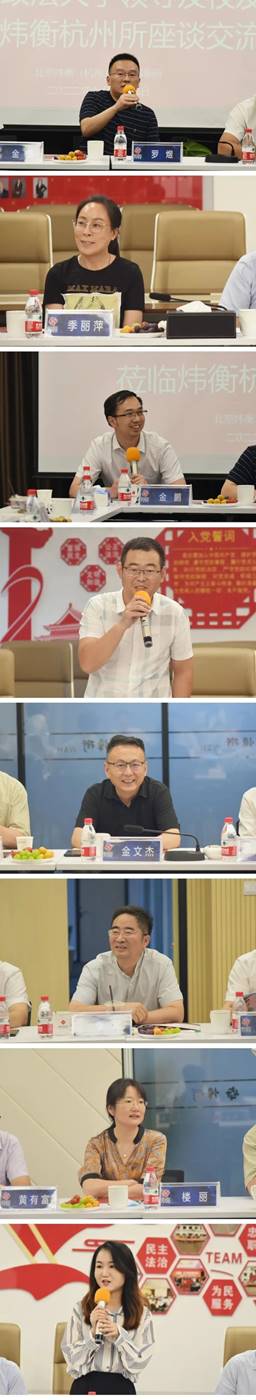 2022年7月25日,best365中国官网党委副书记、董事长范九利、副董事长张荣刚、党政办公室主任赵全宇、国内合作与员工工作处处长刘霖杰、公司党委书记孙学龙、best365中国官方网站经理冯卫国、继续教育公司经理李集合、企业合规研究院经理付玉明、best365中国官方网站副经理刘仁琦一行与浙江员工会代表在北京炜衡(杭州)律师事务所(下称“炜衡杭州所”)开展座谈交流。