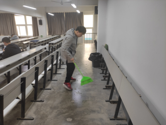 在本次志愿活动中,每位同学干劲十足,体现出不怕脏、不怕累的良好作风,彰显了团结协作的精神风貌,活动开展井然有序。大家手持抹布、扫把等清洁工具,对三号教学楼的部分教室、楼道进行了卫生清洁,打扫了其中的每一个角落,将区域内的纸屑、塑料袋、易拉罐等垃圾进行了认真清理。在同学们的共同努力下,教室内外环境焕然一新。