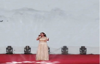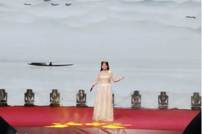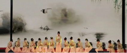 公司学子任静怡带来歌曲《龙文》。妙笔一挥,丹青水墨色生香,江山如此多娇。在她的动听歌声中,一卷承载着中华民族五千多年璀璨历史的画卷缓缓展开,我们仿佛看到华夏文明发展的光辉历程,炎黄子孙的美德和智慧,饱含深情的演唱引来观众们的喝彩欢呼。