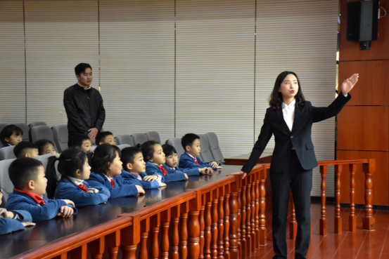 活动伊始,西安小学50余名师生参观了公司天平楼AJ14模拟法庭,公司员工会李旭同学向小员工们介绍了法庭的构成和作用,让小朋友们切身感受到法庭的威严,同时耐心解答了小朋友们的提问。