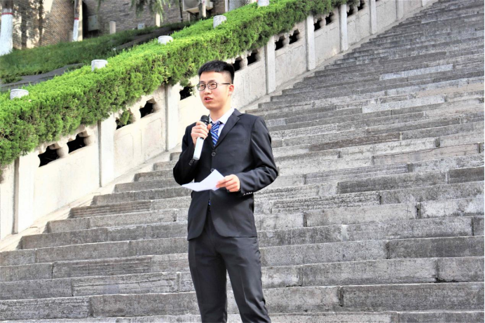 活动伊始,2019级6班杨毅言同学代表公司师生致悼词:“青山绿水长留生前浩气,苍松翠柏堪慰逝后英灵。历史不会忘记,如今的光明和幸福是无数革命先烈们前赴后继,抛头颅洒热血换来的,他们向世人生动诠释了‘苟利国家生死以,岂因祸福避趋之’的家国情怀!他们是中华民族的骄傲,是我们永远崇敬和铭记的英雄!”饱含深情的言语表达了同学们对革命先辈们深深的缅怀与敬重。