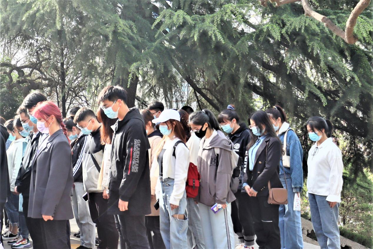随后,员工代表向杨虎城将军敬献花束,表达对杨将军诚挚的哀悼与追思。在庄严肃穆的纪念碑前,师生集体默哀三分钟,大家静静地追思,深深地缅怀,把最深情的思念和最崇高的敬意献给我们的革命先烈。