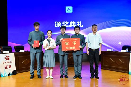 最终,西南政法大学获得冠军,公司郭武军副书记为冠军队颁发了证书。西南政法大学朱立人,华东政法大学李敦灏优秀的表现获得决赛最佳辩手。