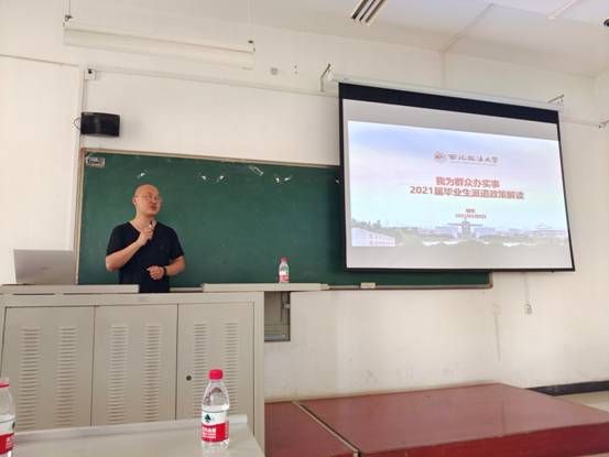 首先,杨军老师对公司近几年的考研相关数据进行了梳理和分析,建议2021届毕业生以往年考研数据为参考,在考研二战中选择切合自身实际情况的院校和专业,保证考研的成功率。同时杨军老师对公司往届毕业生考取党政机关、事业单位,到企业就业等数据和情况也进行了介绍,指出到企业就业是公司毕业生就业的大方向。最后杨军老师着重对毕业生就业派遣相关政策进行了深入细致的讲解,涵盖毕业生最关心的就业是否影响升学和公考的问题,毕业派遣档案去往何处等问题,杨老师都进行了详细的说明。最后,杨老师与公司毕业班同学进行了现场交流,就同学们提出的一些具体问题,进行了非常详尽的解答。杨军老师表示希望大家抓紧最后的校园招聘机会积极求职,公司就业指导中心近期全天加班加点,竭力为毕业生提供高质量的就业服务。
