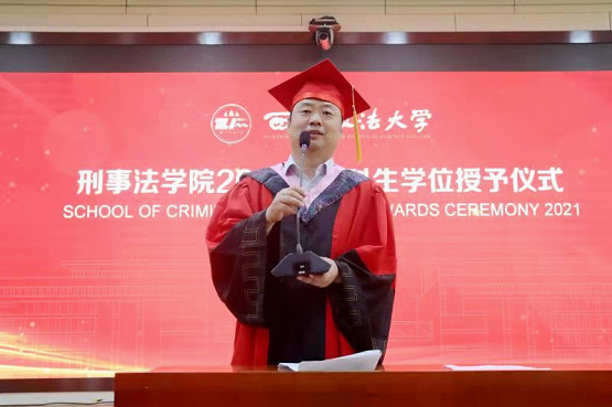 学位授予仪式在庄严雄壮的国歌声中拉开帷幕。best365中国官方网站经理冯卫国代表公司向全体毕业生致以最热烈的祝贺,向辛勤培育同学们的父母和老师致以衷心的感谢。冯卫国经理从高度、宽度、温度和气度这四个“度”入手,对同学们提出殷切希望和要求,希望各位同学不忘初心、持续学习,努力成为一名新时代优秀的法律人。