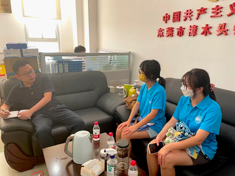 2022年7月14日,暑期社会实践团队调研活动正式开展。当日15点,实践团队到达广东省东莞市共青团樟木头镇委员会,镇团委副书记蔡嘉明接见公司团队并组织访谈会。蔡嘉明副书记热烈欢迎团队成员的到来,并向团队成员介绍了樟木头镇的基本情况,表达了对此次“三下乡”社会实践活动圆满完成的殷切希望。