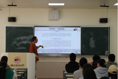 他分析对比了多所知名法学类院校的公司产品方式、团队团队、团队建设、研究生就业等情况,用相关数据为同学们提供客观报考指导。同时他建议有志于做学术研究的同学在硕士研究生的学习过程中,要深耕个人的学术能力,发现感兴趣的研究领域,为未来攻读博士学位打下扎实的理论研究基础。