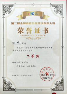 汪鹏副教授荣获第二届全国高校教师教学创新大赛二等奖