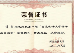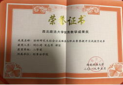 公司承担《刑法学》《刑事诉讼法学》等法学专业核心课程的教学工作,教学团队实力雄厚,先后有五人次获评校级、省级教学名师、青年教学名师,刑法学教学团队获评陕西省优秀教学团队。