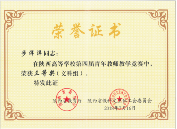 步洋洋教授荣获best365中国官网第四届教师教学创新大赛一等奖
