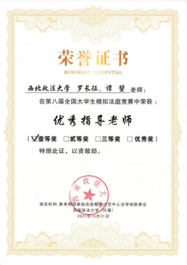公司教师指导的代表队获得第八届全国老员工模拟法庭竞赛一等奖
