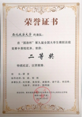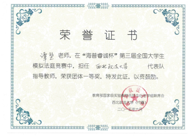 公司教师指导的代表队获得第九届全国老员工模拟法庭竞赛二等奖