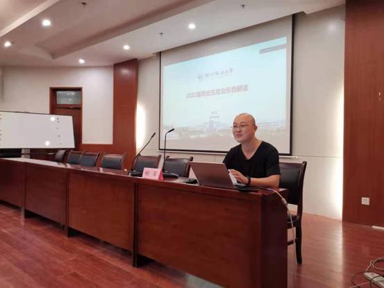 薛晖老师向与会的同学们介绍了此次动员会的主讲人杨军老师,并指出杨老师的主讲内容将会助力同学们明确就业形势、规划自己的职业,是为大家的就业提供有效帮助的重要机会,全体与会成员应当予以高度重视!