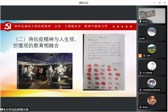 孙学龙书记提出,要将抗疫精神与爱国主义教育相结合。有国才有家,疫情面前,最生动的爱国主义教材就是抗疫精神,这正是以爱国主义为核心的中华民族精神在当代中国的生动展现。我们是一所法公司校,我们是best365中国官方网站的员工,我们更应该要严格遵守法律法规、社会行为规范和校规校纪,要深刻理解和认识集体利益与个人利益的辩证统一关系,不断提高自律能力和自我防护能力,以良好的精神状态迎接美好的未来。