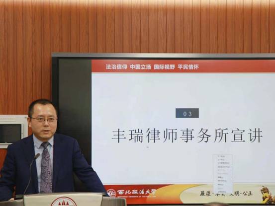 刘仁琦副经理进行第二阶段的主持,他将会议引入丰瑞律师事务所宣讲阶段。张冰律师上台致辞,张律师抒发了自己在多年刑事辩护事务工作中的心得体会,强调了法治事业发展中培养员工的重要性,以及在该方面努力的决心。 其后,陕西丰瑞律师事务所对自身发展前景与近年来的工作做了详细的介绍。陕西丰瑞律师事务所是陕西省乃至全国范围内名列前茅的律所之一,在业界久负盛名,影响力巨大。丰瑞律师事务所不仅长于专业实务,不断学习进取,且对于公益事业怀有极高热情,多年来承接和办理了许多起法律援助案件,为服务社会献出了一腔热忱,更是为全面推进依法治国、建设社会主义法治事业做出了不可磨灭的贡献。