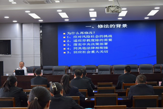 随后,冯卫国教授以《刑法修正案的解读》为题,为涧西区人民法院的干警做了专题讲座。整场讲座观点全面、贴切实际,在详解法条的同时穿插证据理论介绍,关注规则在实践中的应用,在场的干警纷纷表示获益匪浅。