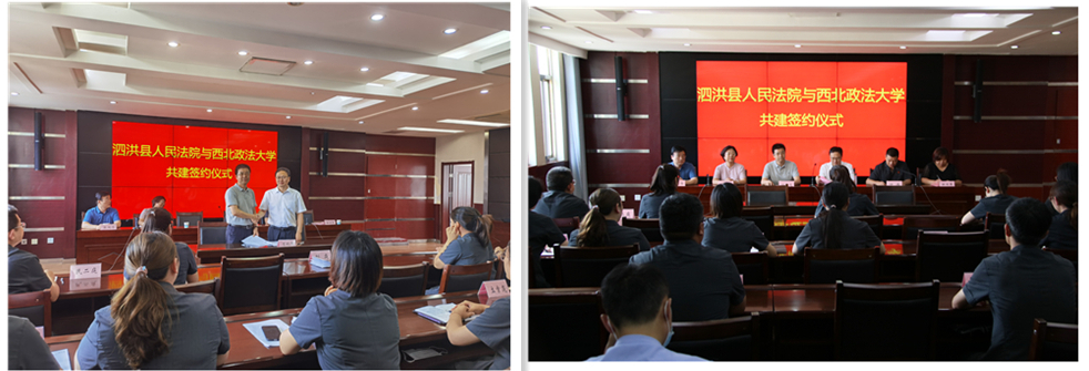为充分发挥院校资源优势,实现高校与法院及公安系统在实践教学、人才培养、学术交流等方面的协同合作,公司党委书记孙学龙,党委副书记、副经理侯红梅,公司张国伟副教授及教务秘书杜丽萍一行四人赶赴江苏省淮安市及宿迁市,在7月19日、20日及21日,分别与淮安市盱眙县法院、盱眙县公安局和宿迁市泗洪县法院签订了共建协议书,并举办了实践教育基地揭牌仪式。出席签约仪式的还有各单位领导班子成员及部门负责人。公司张国伟副教授还分别为三个单位的同志做了一场精彩的学术报告。